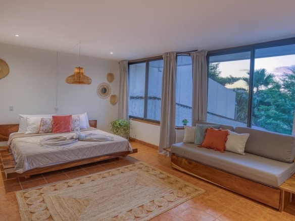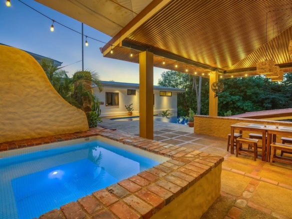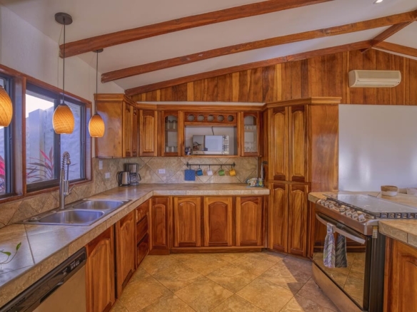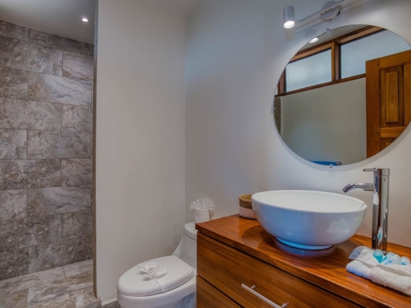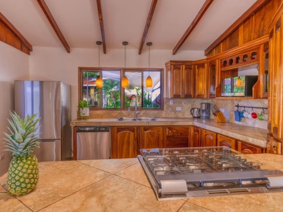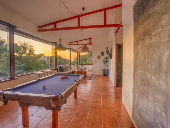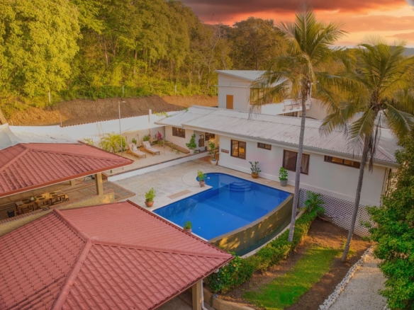 The Villa is located in Playas del Coco at 30 minutes from the Liberia airport. It has a hot tub, an infinity pool, 2 kitchens and many more benefits.